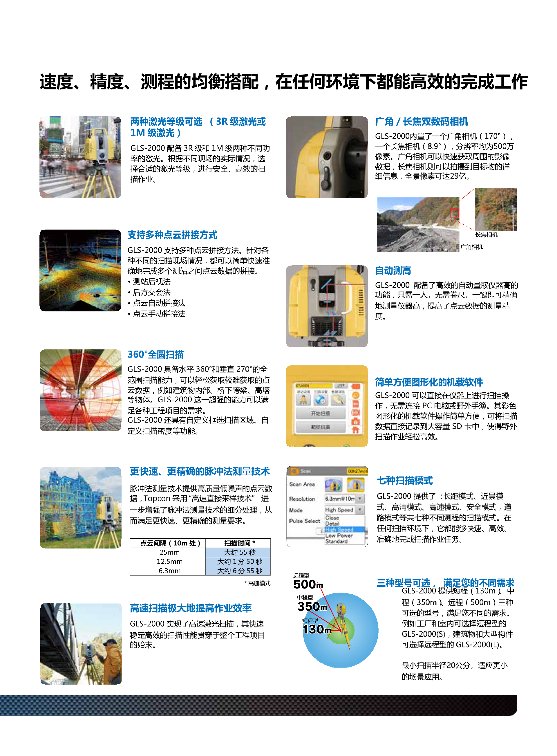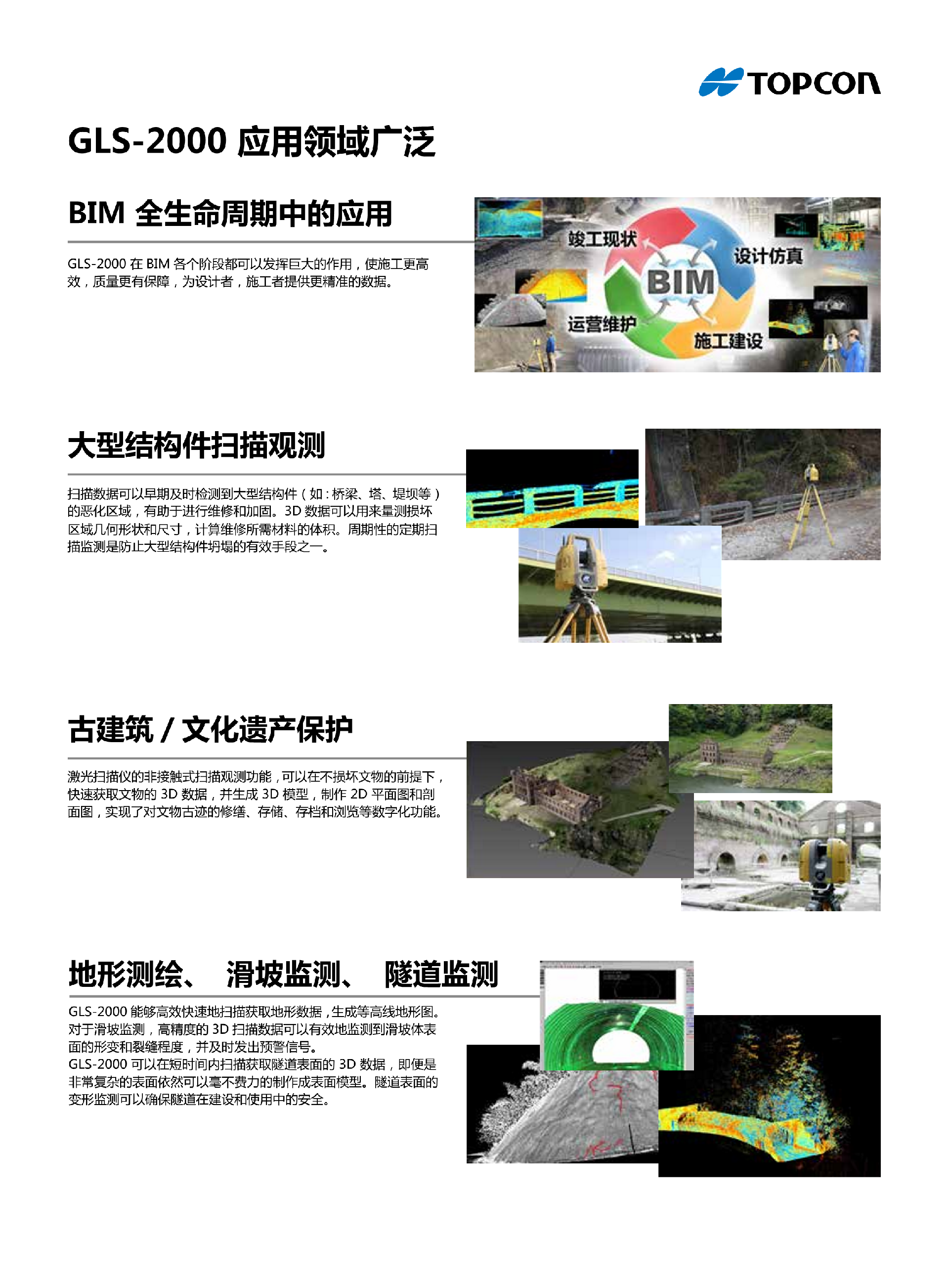 拓普康GLS-2000是一款高精度、高效率、智能化的三維激光掃描儀。其超長的測距范圍和超高的掃描精度,在工程項目的各個階段都能發揮巨大的作用,可以顯著提高工作效率,提升工作質量。
